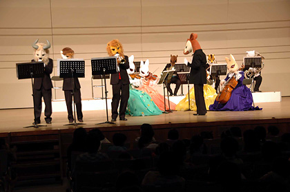 文学作品の世界をクラシック音楽を通して、絵本のように分かりやすく子どもたちにも紹介しようという音楽の絵本は、「ズーラシアンブラス」の金管5重奏、「弦(つる)うさぎ」の弦楽4重奏で子どもたちを楽しませた。